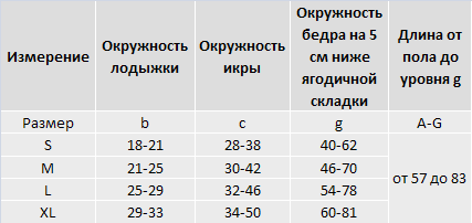 - Физиологически распределенная градуированная компрессия лодыжка 100%, середина икры 80%, колено 50-60%, верхняя треть бедра 20-30%;