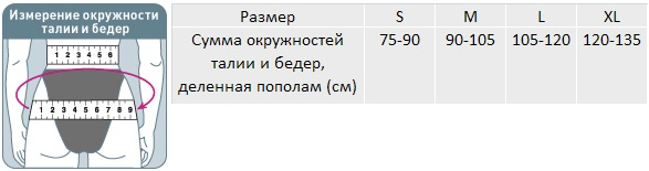 Для правильного выбора подходящего размера ортопедического поясничного корсета Orlett LSO-981 необходимо сантиметровой лентой измерить окружность талии и бедер. Далее сумму окружностей поделить пополам и воспользоваться таблицей, приведенной ниже: