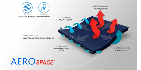 AeroSpace™ это инновационный материал нового поколения. Представляет собой пространный и эластичный 3D материал, состоящий из двух внешних слоев и плетенной внутренней части создающей нужную толщину и разгружающие свойства. Используется полиэстр обеспечивающий механическую прочность и спандекс обеспечивающий эластичность. Это очень легкий, высоко эластичный и ажурный материал, благодаря чему хорошо отводит пот и способствует вентиляции. Изделия из этого материала нейтральны к суставу, не греют и не охлаждают его, но поддерживают нужную компрессию и прилегание и уменьшают дрожь мышц во время физических нагрузок. Его толщина и 3D структура защищают от воздействия установленных на изделии ортопедических шин, фишбин или других жестких элементов и гарантируют мягкость на ощупь. Ортез изготовлен из материалов ActiveSpace и AeroSpace