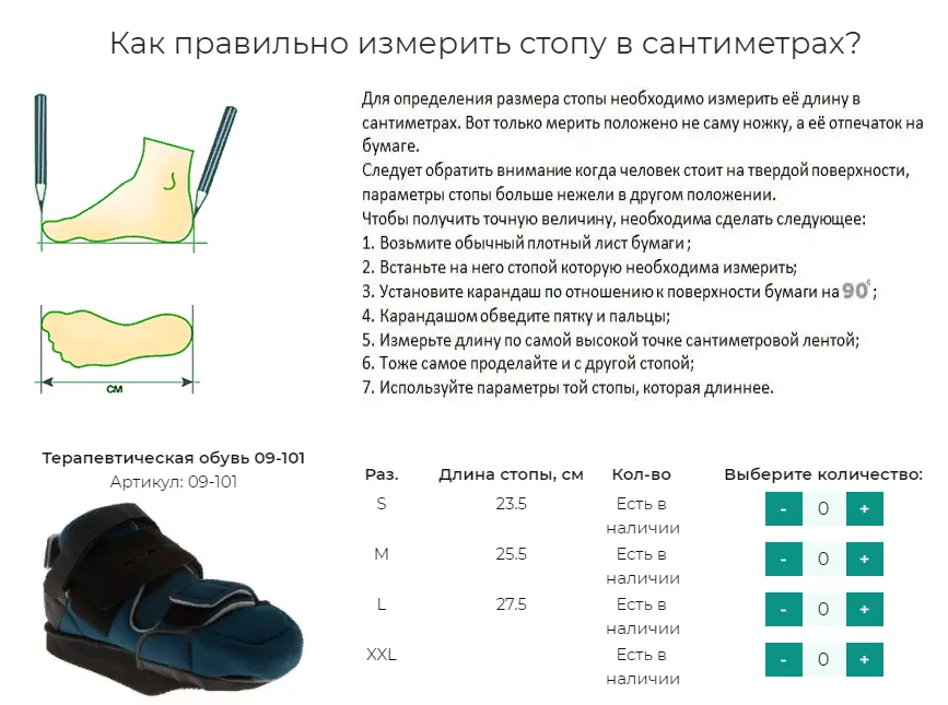 Применяется при диабетической и ревматоидной стопе, также является компенсаторным ботинком для здоровой ноги, при использовании 09-100, 09-101