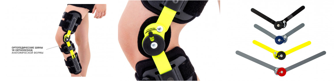 Коленный ортез обеспечивает иммобилизацию коленного сустава. Он состоит из двух боковых шин анатомического профиля из легкого алюминия с шарнирным соединением.