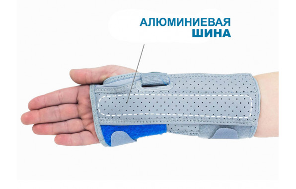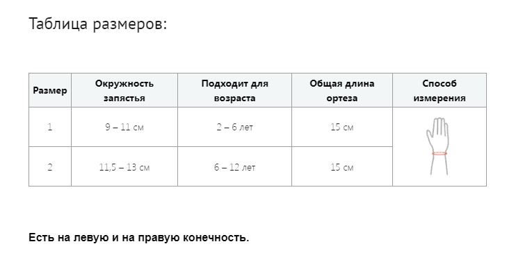 Детский ортез запястья EB-N-01 разработан для лечения травм лучезапястного сустава. Модель имеет вид полуперчатки, частично закрывающей ладонь и область предплечья. Дополнительные элементы - ортопедическая шина и эластичный ремень на липучках, обеспечивают добавочное ограничение подвижности сустава, не затрагивая пальцы.