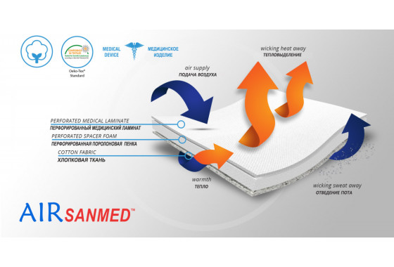 Ортез был изготовлен из двух видов материала ProFit – эластичная двухслойная ткань идеально моделирует форму конечности и отводит пот от кожи и AirSanmed - отлично иммобилизирует и стабилизирует, что необходимо при вывихах сустава и переломах.