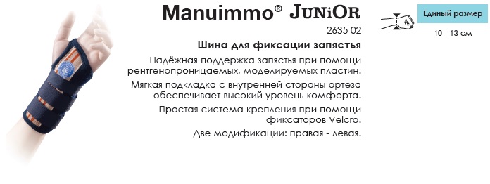 Купить mANUIMMO® JUNIOR Шина для фиксации запястья детская с доставкой в Ростове-на-Дону в интернет салоне Med V Rus по цене 3 250 руб.. Скидки до 25%. Доставка и самовывоз из пункта выдачи товаров. Оплата наличными или картой. Телефон для заказов +7 (495) 003-4512.