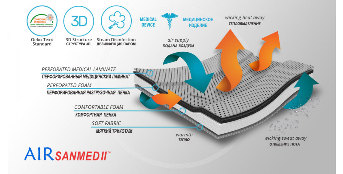 Ортез изготовлен из материала AirSanmed II