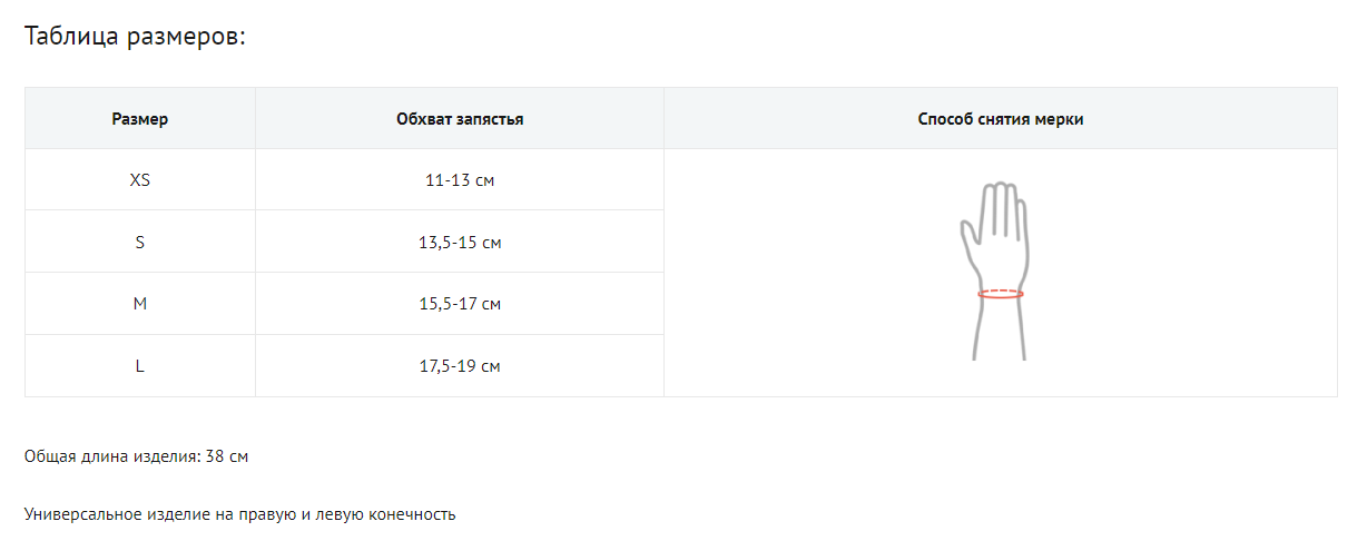 - Конструкция очень удобна в применении и позволяет носить ортез как на правой, так и на левой руке