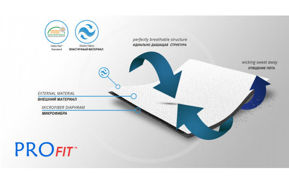 Ортез лучезапястного сустава выполнен из материала ProFit™ — двухслойной ткани, которая растягивается во всех направлениях, отлично моделируя форму конечности — создаёт т. наз. вторую кожу. Внешний слой из спандекса отвечает за соответствующую компрессию и оптимальное прилегание изделия, сокращает мышечные колебания, возникающие во время физической нагрузки. Внутренняя мембрана из микрофибры, хлопка и эластана отвечает за поддержание соответствующего климата кожи и отведению влаги, её структура гарантирует бархатную мягкость при прикосновении.