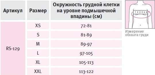 Для правильного выбора плечевого ортеза Orlett RS-129 необходимо сантиметровой лентой измерить окружность грудной клетки на уровне подмышечной впадины и воспользоваться таблицей: