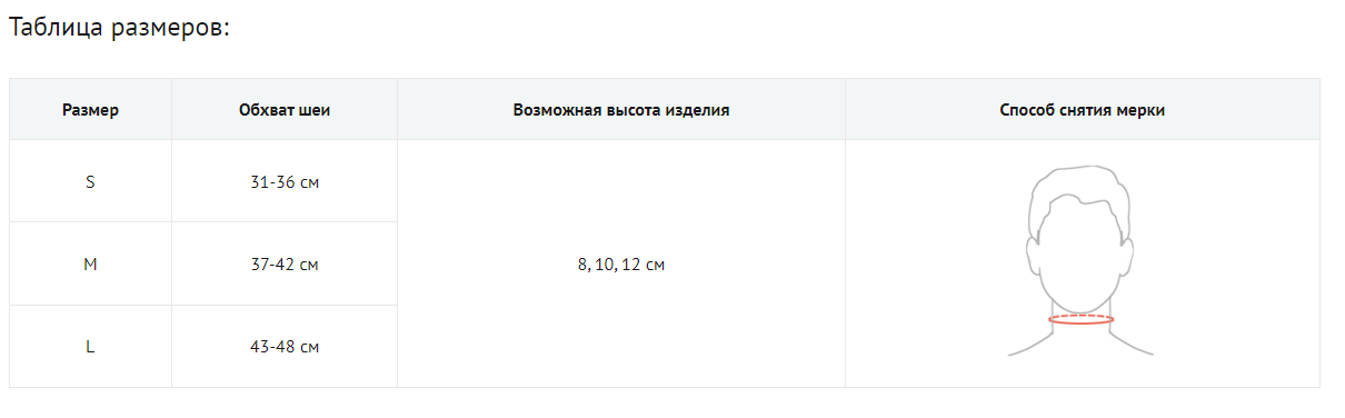 Стабилизирует и фиксирует шейный отдел позвоночника, разгружает мышцы шеи, способствует нормализации кровообращения. Дополнительная эластичная пластина обеспечивает сильную фиксацию шейного отдела позвоночника, что необходимо при серьезных патологиях. Простота подгонки, комфортный материал, легкий вес минимизируют дискомфорт, связанный с ношением бандажа, и способствуют быстрому достижению лечебного эффекта. Показания и период применения в зависимости от назначения лечащего врача.
